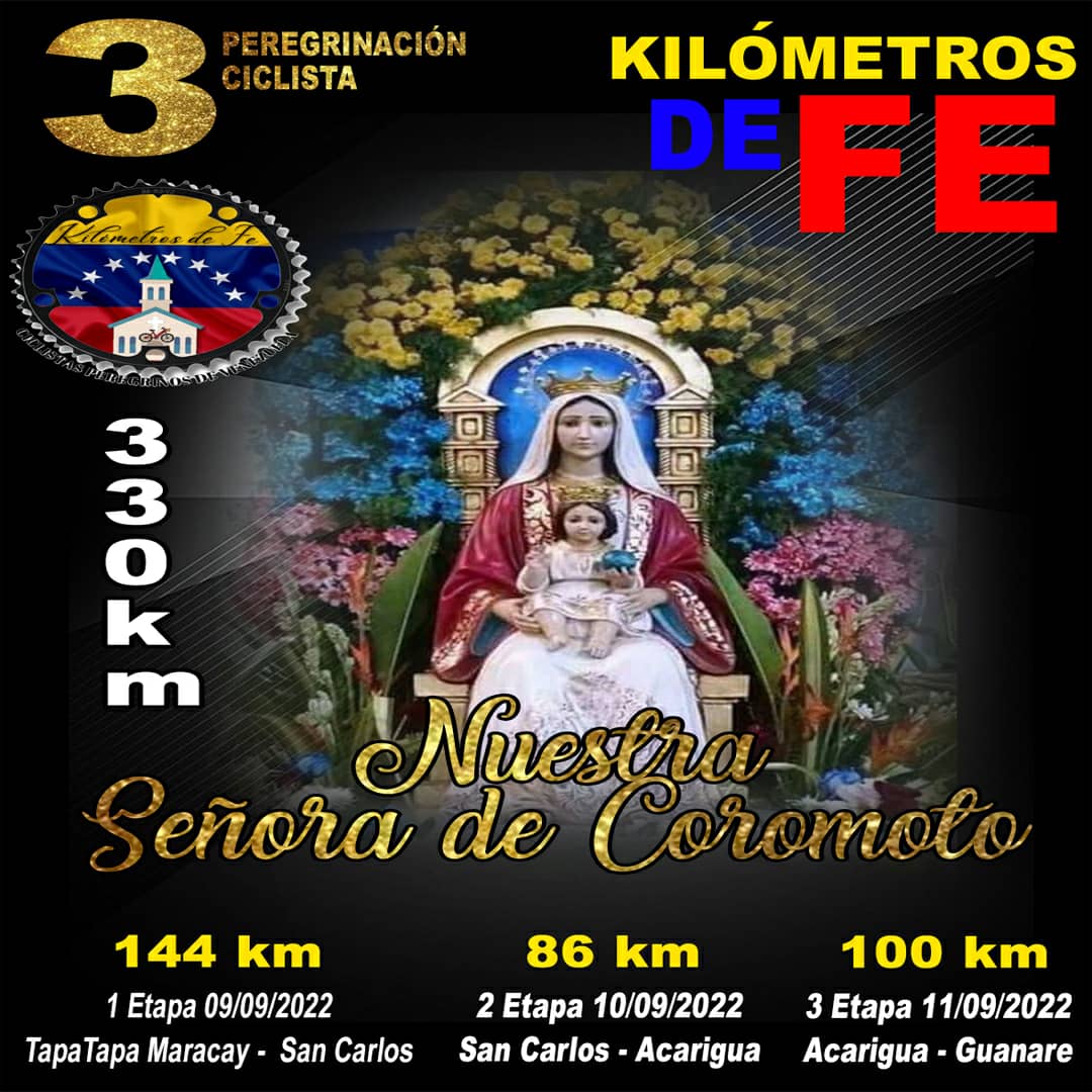 Los peregrinos de “Kilómetros de Fe” recorrerán 330 km durante tres días, hasta Guanare (Portuguesa), para participar este 11 de septiembre en la solemnidad de los 70 años de la Coronación Canónica de Nuestra Señora de la Coromoto, como patrona de Venezuela.